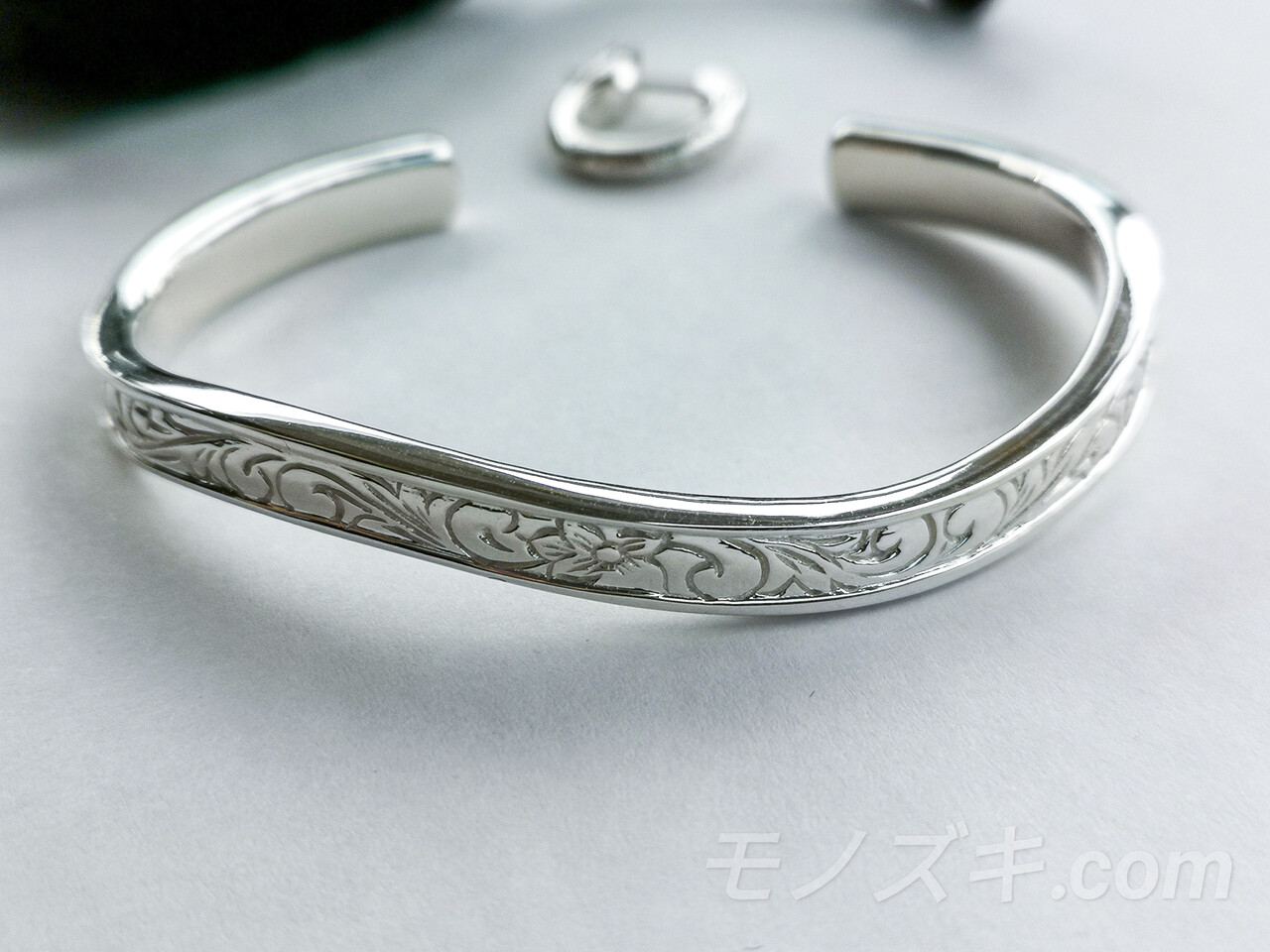 直線的な通常のバングルでは味わえない個性的なデザインが美しいのです。